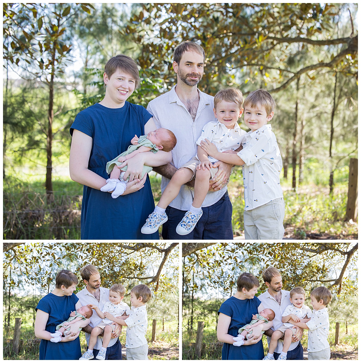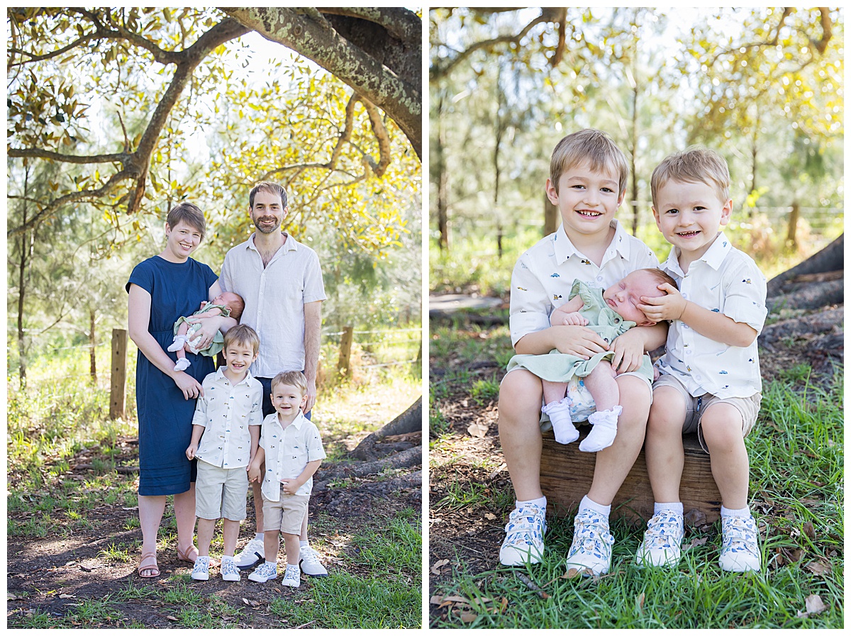 These early days pass so quickly, but sessions like this preserve exactly how it felt — three siblings together, a growing family, and a beautiful morning filled with light and love.